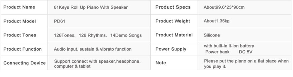 Đàn Piano 61 phím cuộn mềm dẻo Konix Flexible PD61 – Pin sạc 1000mAh